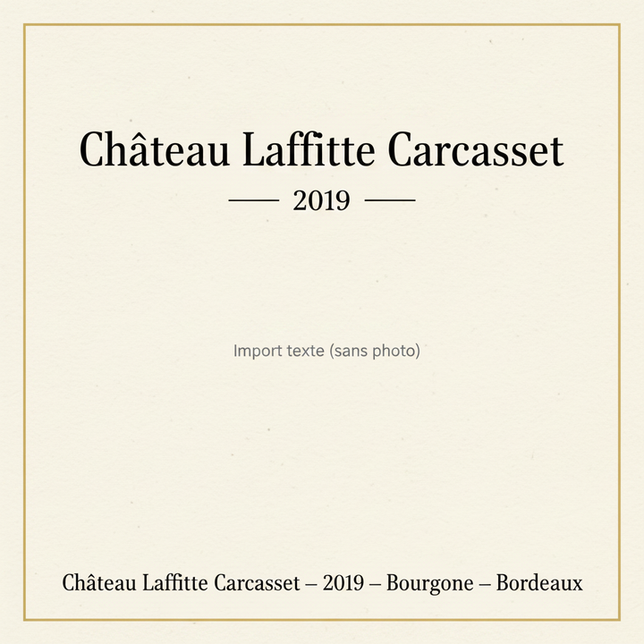 Le Château Laffitte Carcasset, vignoble historique de Saint-Estèphe, est ancré dans une région d'exception pour l'élaboration de grands vins de Bordeaux. Son nom évoque une lignée de propriétaires passionnés, ayant contribué au fil des siècles à forger sa réputation. Au fil du temps, le domaine a connu diverses périodes, mais a toujours su conserver l'essence de son terroir argilo-graveleux, propice à l'expression du Cabernet Sauvignon, cépage roi de la rive gauche. Le millésime 2019, caractérisé par des conditions climatiques favorables, a permis au Château Laffitte Carcasset de produire un vin structuré et élégant, reflétant le potentiel de ce terroir singulier de l'appellation Saint-Estèphe.